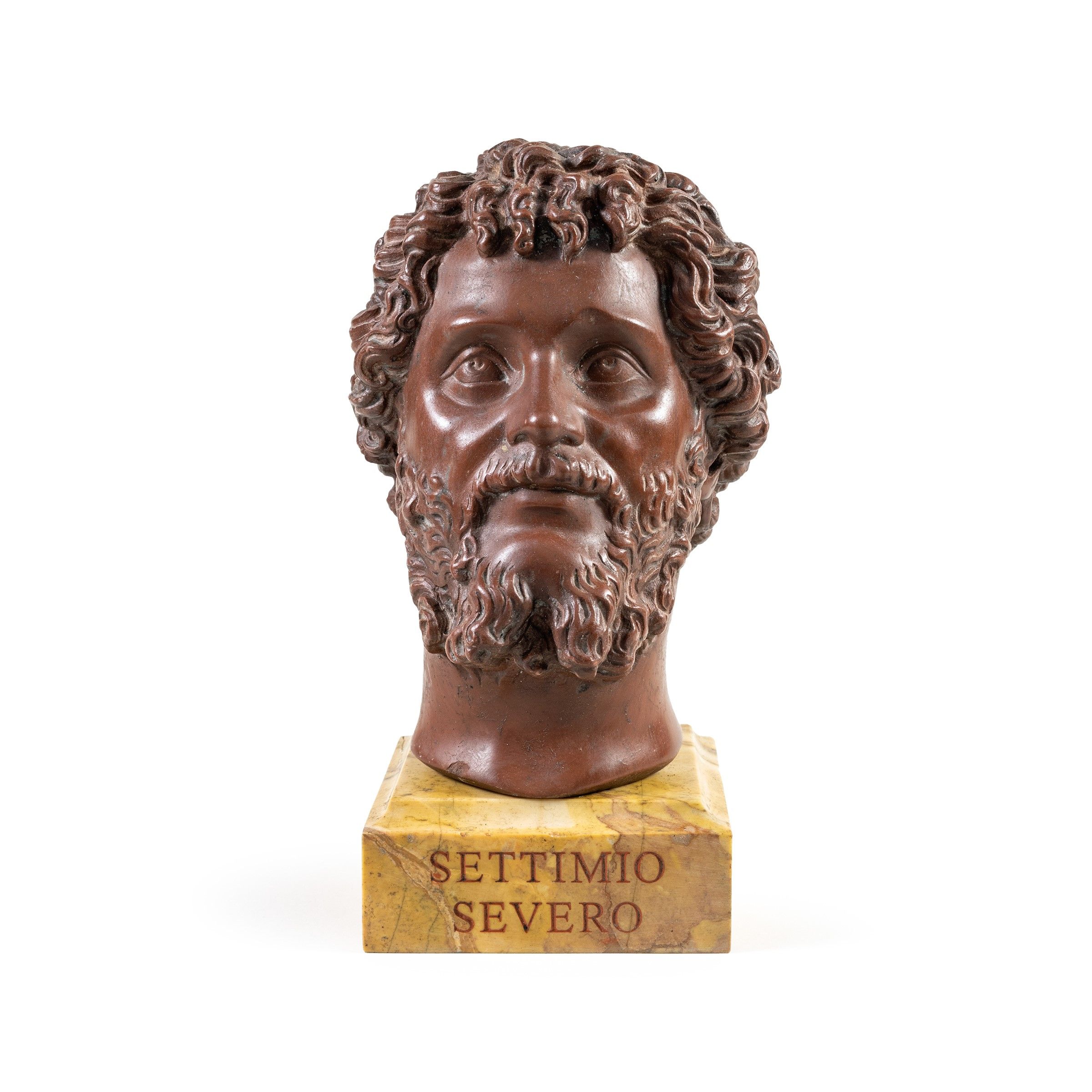 XIX-XX Sec. raffigurante l'imperatore romano Settimio Severo, poggiante su base squadrata in marmo giallo antico