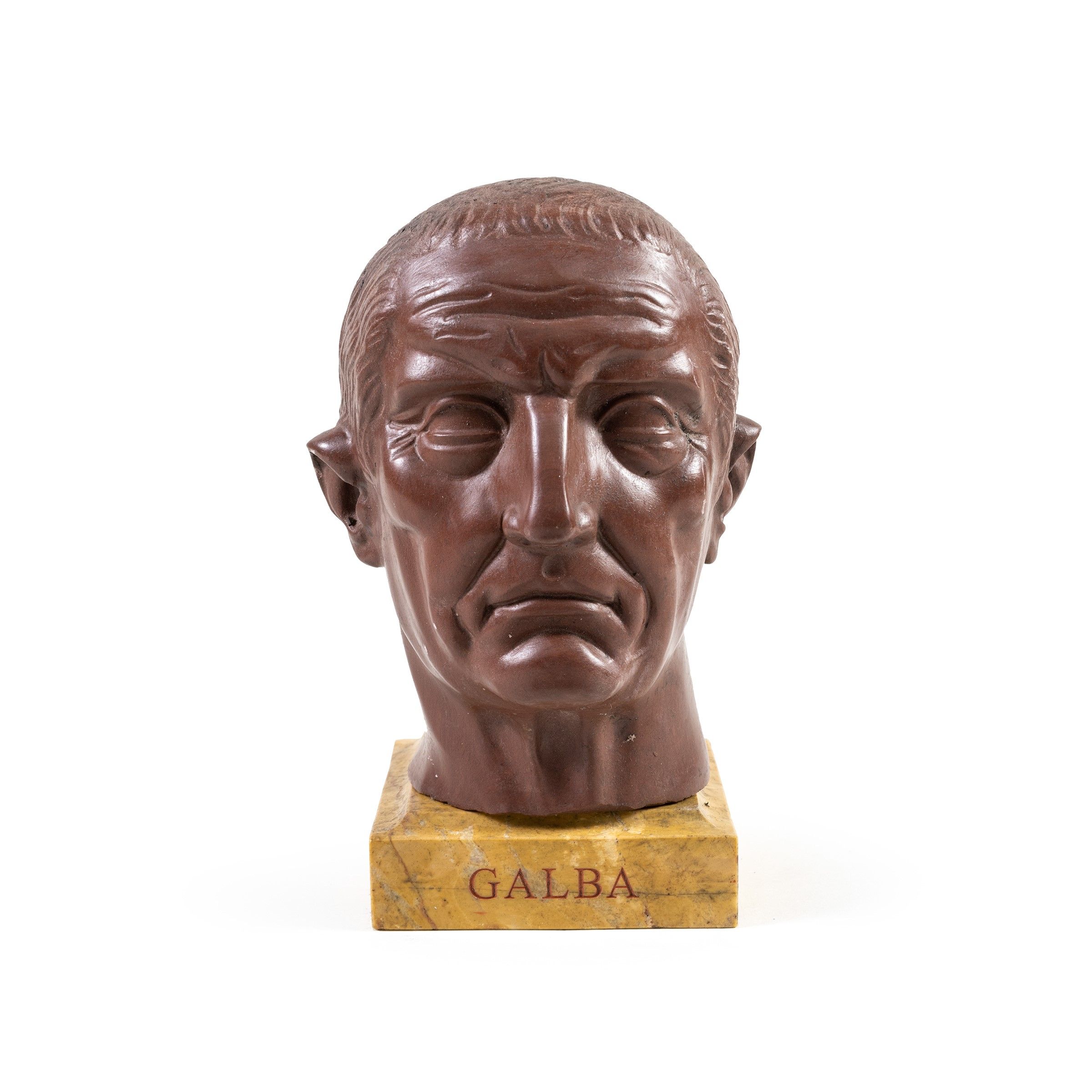 XIX-XX Sec. raffigurante l'imperatore romano Galba, poggiante su base squadrata in marmo giallo antico