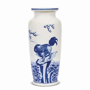 VASO, CINA, DINASTIA QING, SEC.XIX in porcellana bianco e blu decorato con Qilin e onde stilizzate. Alt.cm 41,5 [..]