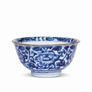 CIOTOLA, CINA, DINASTIA QING, SEC.XVII-XVIII in porcellana bianco e blu decorato con fiori e rami stilizzati. [..]