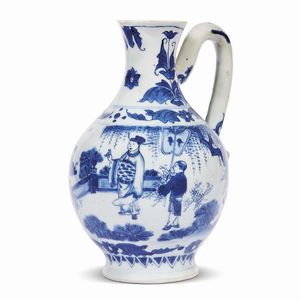 VERSATOIO, CINA, DINASTIA QING, SEC.XIX-XX in porcellana bianco e blu decorato con figure del corte cinese. Alt.cm [..]