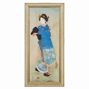 DIPINTO, GIAPPONE, MEIJI PERIODO, SEC.XX su seta raffigurante una ragazza con veste Furisore Kimono di colore [..]