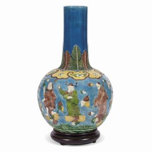 VASO, CINA, DINASTIA QING, SEC.XIX in biscuit decorato con tre colori e raffigurante gli otto immortali che attraversano [..]