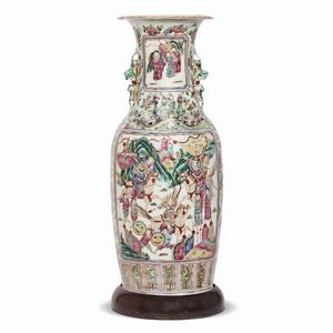 VASO, CINA, DINASTIA QING, SEC.XIX in porcellana Canton dipinto con personaggi e una divinità femminile [..]