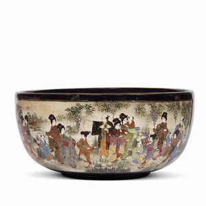 GRANDE CIOTOLA, GIAPPONE, PERIODO DI MEIJI, SEC.XIX in porcellana Kutani-yaki raffigurante nobildonne di Ōoku [..]