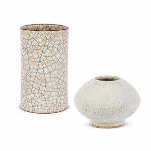 VASETTO E PORTA PENNELLI, CINA, DINASTIA QING, SEC.XVIII-XIX in porcellana bianco celadon tipologia Ge a forma [..]
