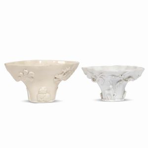 DUE COPPE DI LIBAGIONE, CINA, DINASTIA QING, SEC.XVIII in porcellana bianca Dehua a forma Xijiaobei decorato con [..]
