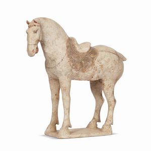 SCULTURA, CINA, DINASTIA TANG, SEC.VIII in gres raffigurante cavallo. Alt.cm 32 唐 八世纪 [..]