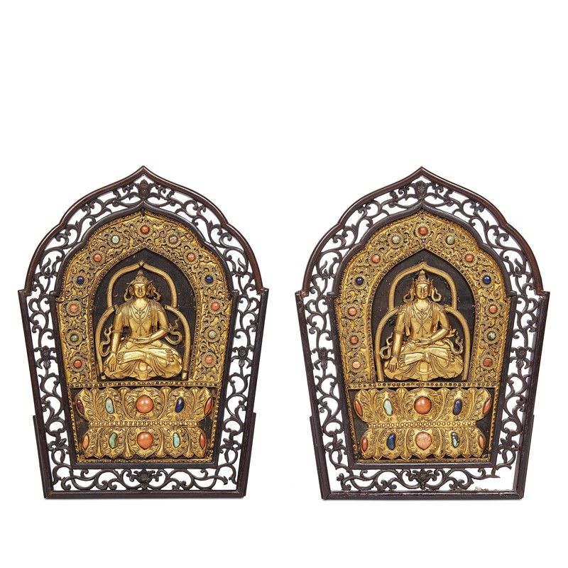 藏 十九至二十世纪 铜鎏金佛像牌一组 高22,3厘米