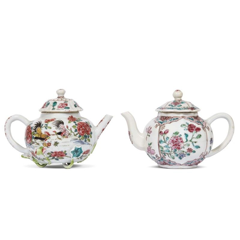 清 十七世纪 粉彩雄鸡花卉纹壶一组两件 高10,5厘米