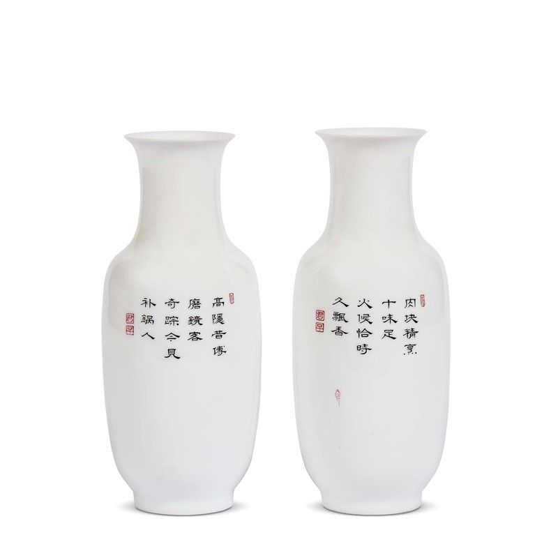 中国 二十世纪 粉彩人物故事瓶两件 高14厘米