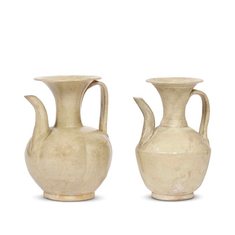 宋 十世纪 越窑白瓷执壶两件 高17,3 - 16,9厘米