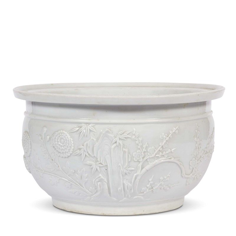 清 十九世纪 白釉梅兰竹菊纹缸 直径32厘米