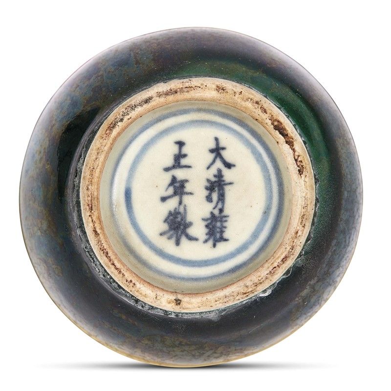 清 十九世纪 孔雀蓝釉龙纹瓶一件及绿釉观音瓶两件 高13,5-13,8厘米