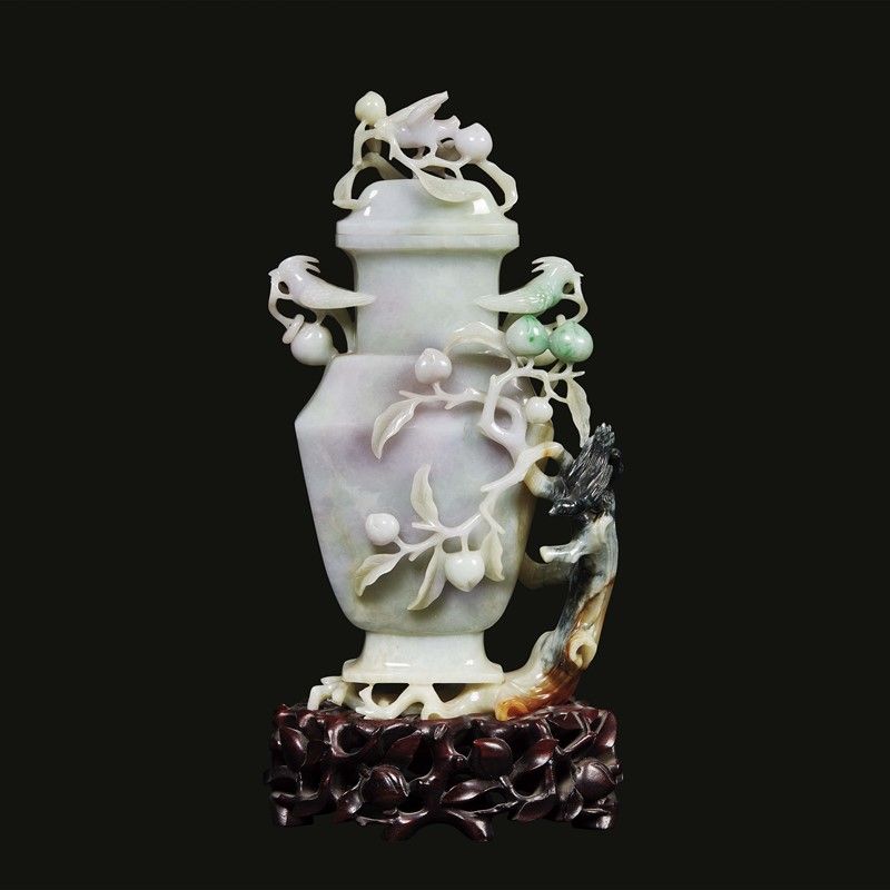 清 十九世纪 翡翠喜上梅梢盖瓶 净高19,5厘米