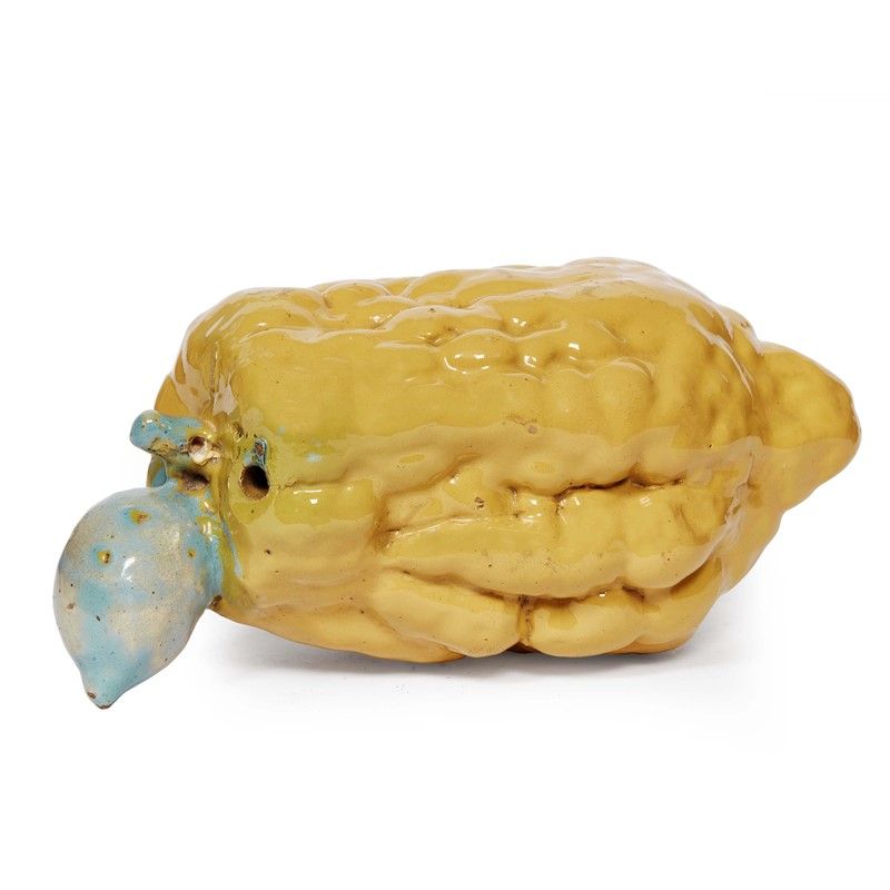 in maiolica decorata a policromia, caratterizzato da un’attenta resa realistica a trompe l’oeil, su modello delle opere robbiane; cm 10,5x23x11