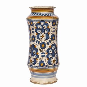 ALBARELLO, VENEZIA, PRIMA METÀ SECOLO XVI in maiolica dipinta in monocromia blu, corpo cilindrico appena [..]