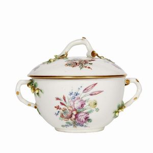 TAZZA DA BRODO CON COPERCHIO, NAPOLI, MANIFATTURA DI CAPODIMONTE, PERIODO CARLO III, 1750-1759 CIRCA in porcellana [..]