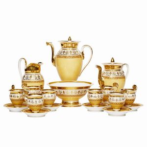 SERVIZIO DA CAFFÈ, NAPOLI (?), INIZI SECOLO XIX in porcellana dipinta in monocromia e oro, forma delle [..]