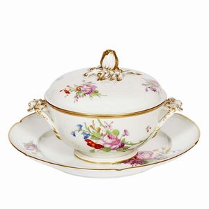 TAZZA DA BRODO CON COPERCHIO, NAPOLI, MANIFATTURA DI CAPODIMONTE, PERIODO CARLO [..]