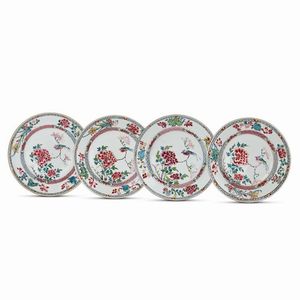 QUATTRO PIATTI, CINA, DINASTIA QING, PERIODO YONGZHENG, 1723-1735 in porcellana dipinta in policromia, forma piana [..]