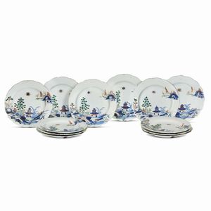 DODICI PIATTI, CINA, DINASTIA QING - EPOCA YONGZHENG, SECOLO XVIII in porcellana dipinta in policromia con smalti [..]
