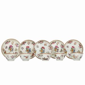 ASSORTIMENTO DI OTTO TAZZINE CON PIATTINO, CINA, COMPAGNIA DELLE INDIE, SECOLO XVIII in porcellana, tazzine a [..]