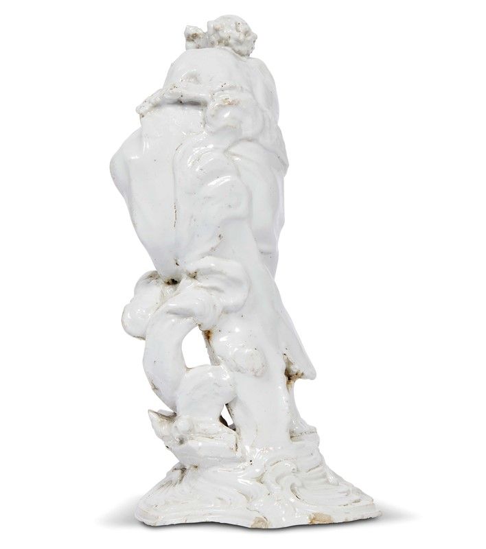 in porcellana acroma raffigurante “l’allegoria dell’Inverno”, modellata su una delle quattro stagioni scolpite in avorio da Balthasar Permoser. Il soggetto fu riprodotto in porcellana da varie manifatture europee, con alcune varianti (si veda ad esempio la statuina di Anton Carl Luplau, Winter, 1775/76, Herzog Anton Ulrich-Museum, Braunschweig, inv 163). Klaus Lankheit ricorda nell’elenco dei modelli una figura, oggi al Museo Correale di Sorrento, con il braccio sinistro che pende verso il basso anziché reggere una torcia, mentre un altro modello policromo dello stesso tipo è conservato al Metropolitan Museum of Art. Nell'inventario della manifattura di Doccia la serie delle quattro stagioni è citata intorno al 1760 come “Le quattro Stagioni di Baldassar senza padellina, e con candeliere, alte circa mezzo braccio”. Secondo il Lankheit esistono due serie di stagioni di Permoser menzionate nell'inventario, che potrebbero riguardare i gruppi di figure con e senza portacandele; cm 20x10,5x10