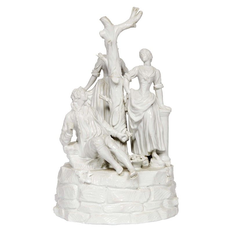 in porcellana bianca, raffigurante scena di corteggiamento intorno ad un albero. I gruppi in porcellana entrano a far parte della decorazione della tavola attorno agli anni settanta del Settecento, rappresentando una produzione richiesta e di buon successo per la manifattura fiorentina, affidata in quel periodo all’opera plastica di Giuseppe Bruschi. Spesso questi gruppi mostrano elementi comuni, variati a seconda del soggetto, prevalentemente di natura arcadica o con riferimento alla caccia e alla vendemmia; alt. cm 24, diam. cm 14,2