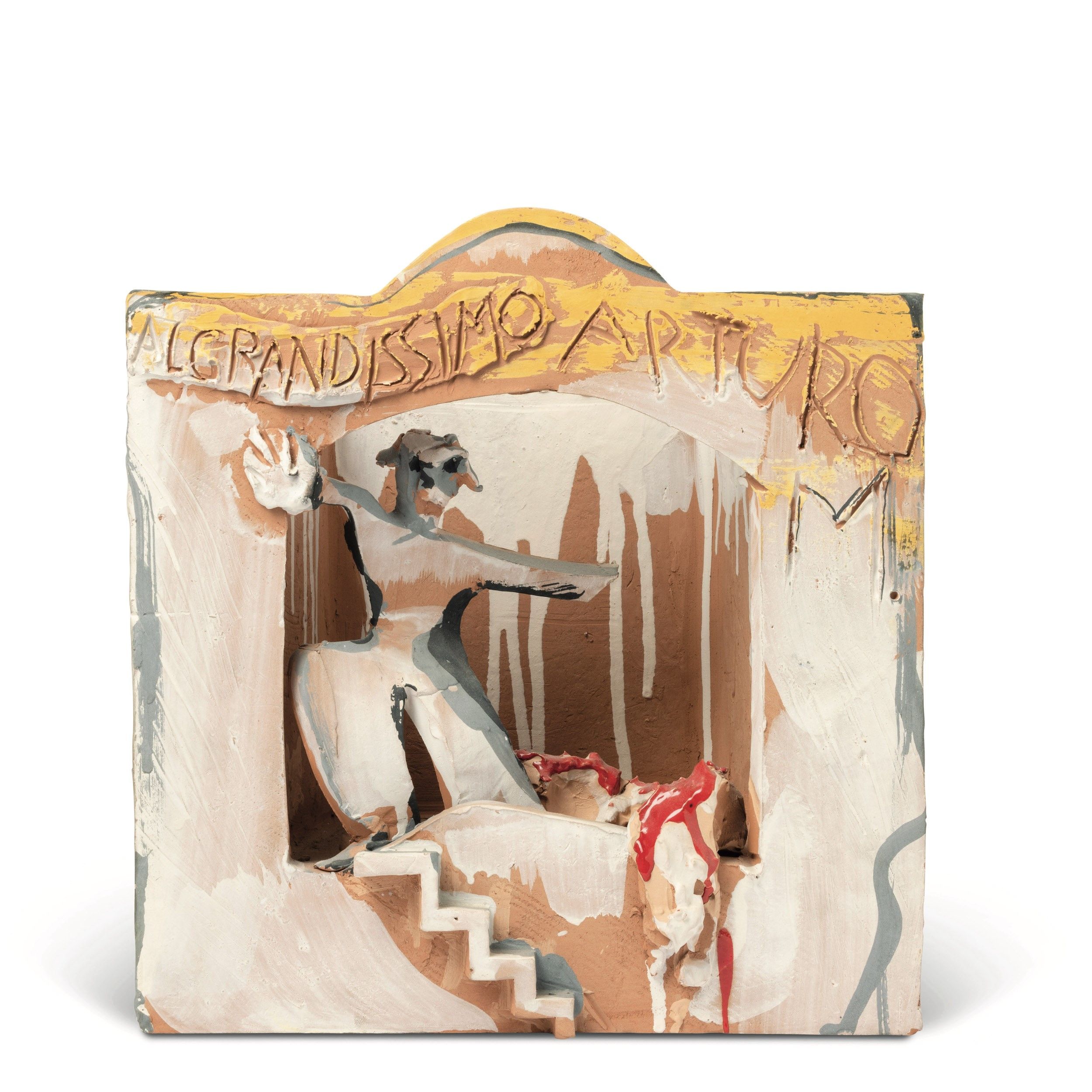 scultura in ceramica policroma, Largh. 40 - Prof. 20 - Alt. 45 Cm