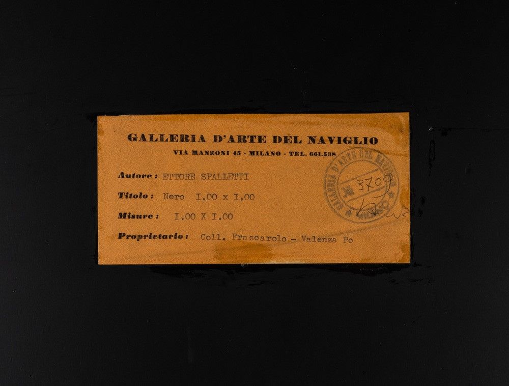 Etichetta e timbro al retro della Galleria d'arte del Naviglio, Milano