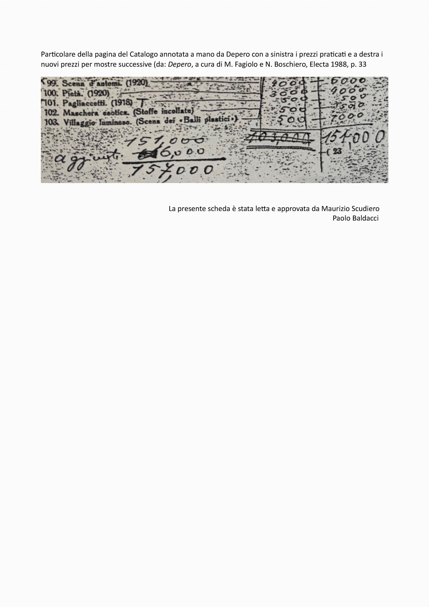 1918 Sul retro, scritta autografa: “DEPERO / PAGLIACCETTI 1918 / L. 500”