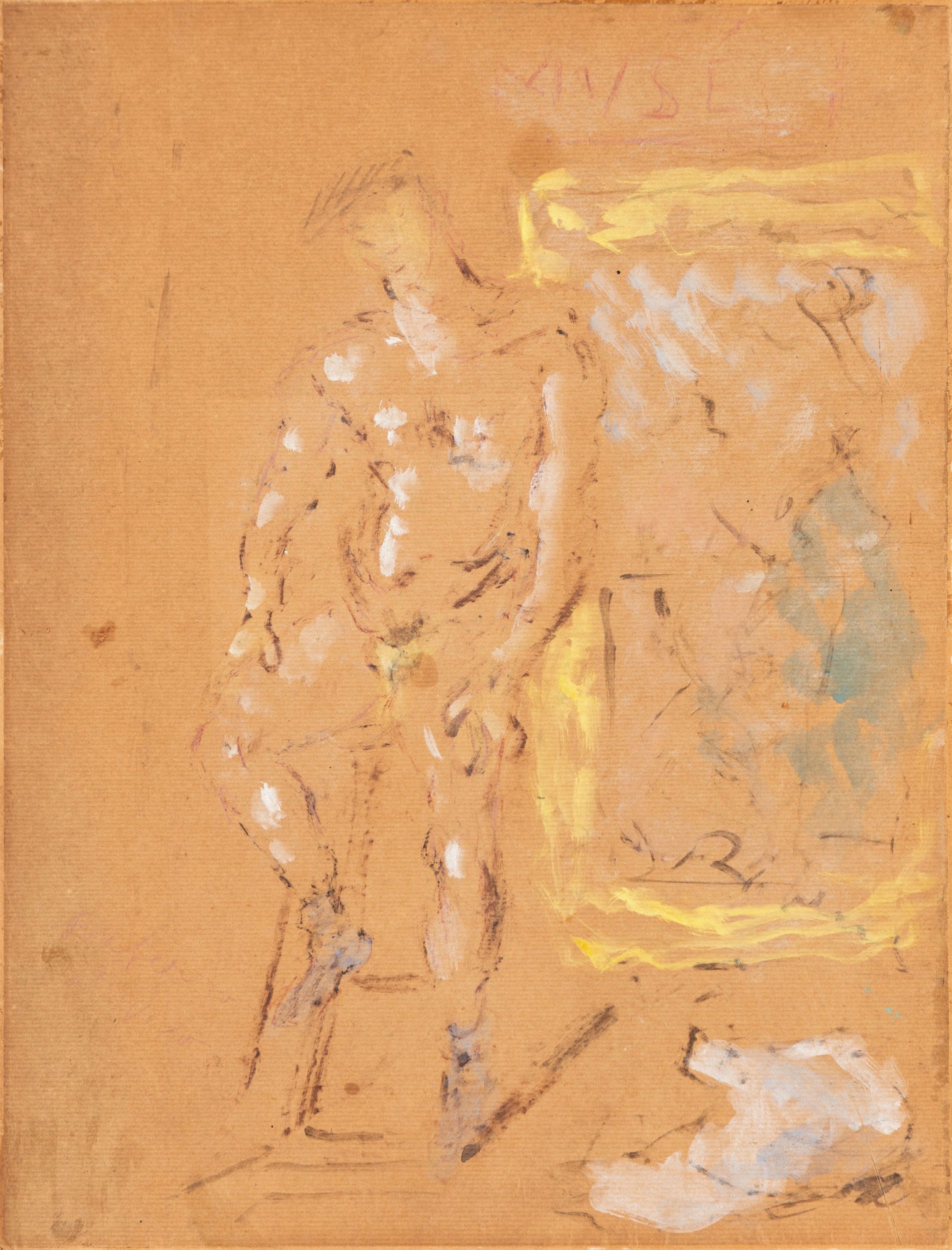 matita rossa e olio secco su carta applicata su cartone, cm 50,5 x 38,8