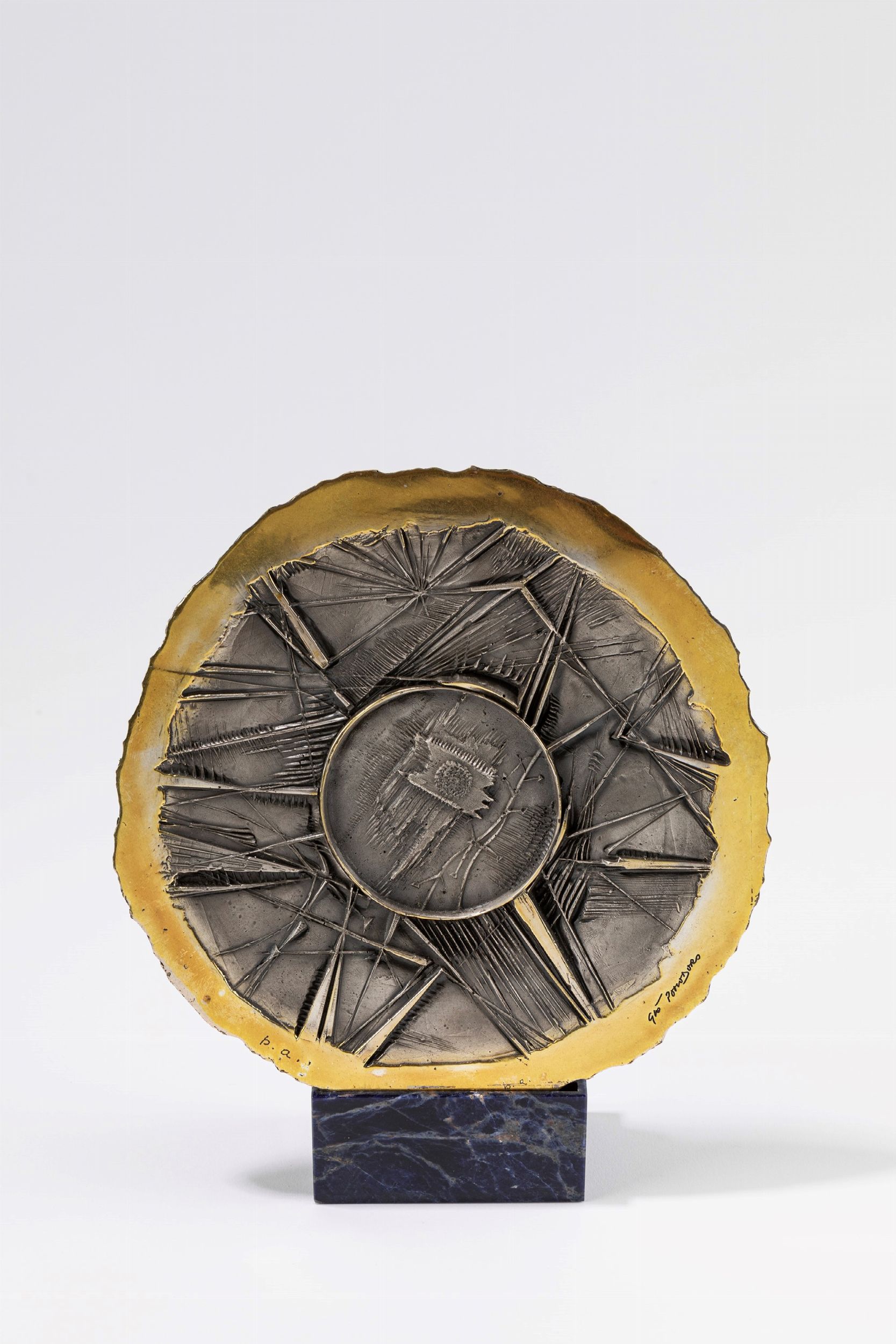 argento, es. p.a., cm diam. 19 ; (base in marmo) cm 4 x 8 x 5