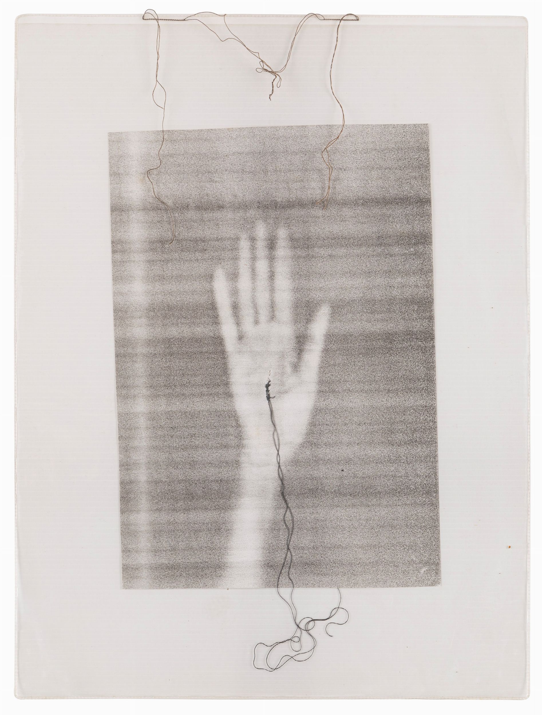 fotocopia, filo nero, ricamo e plastica, cm 40,5 x 30,5