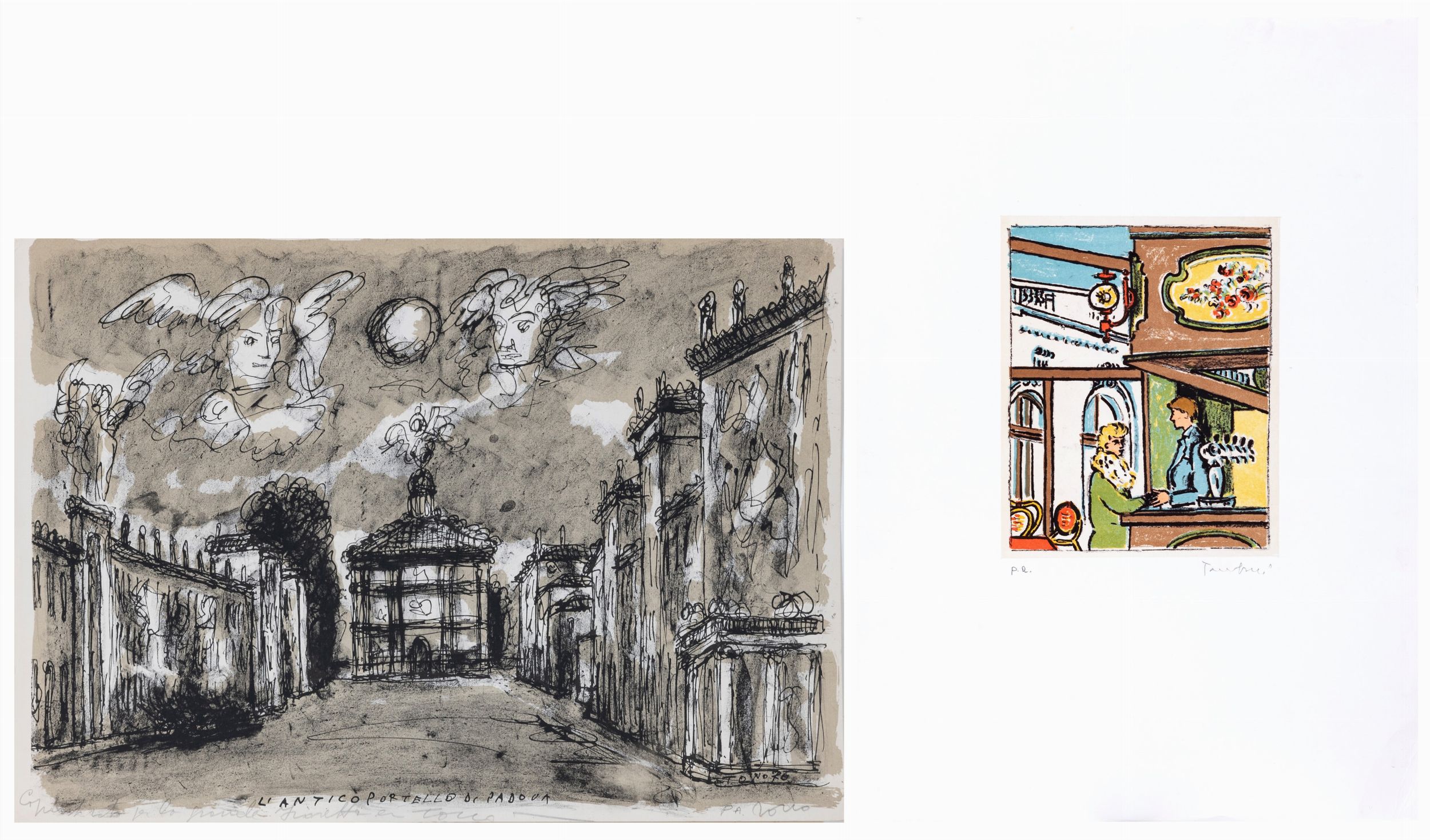 lotto di 2 serigrafie es p.a., cm. 50x35 cad.