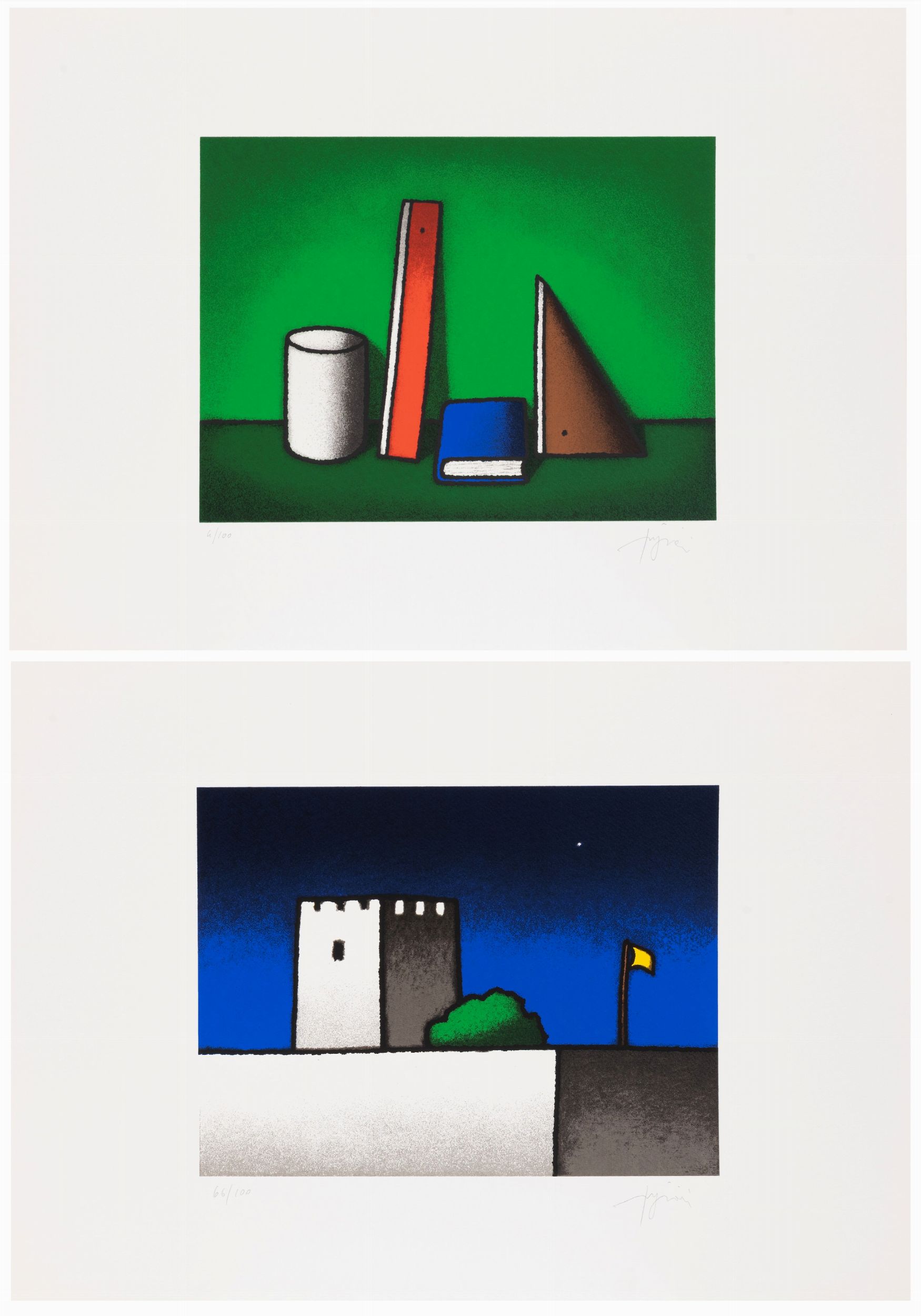 lotto di 2 serigrafie es. 66/100 - 4/100, cm. 50x70