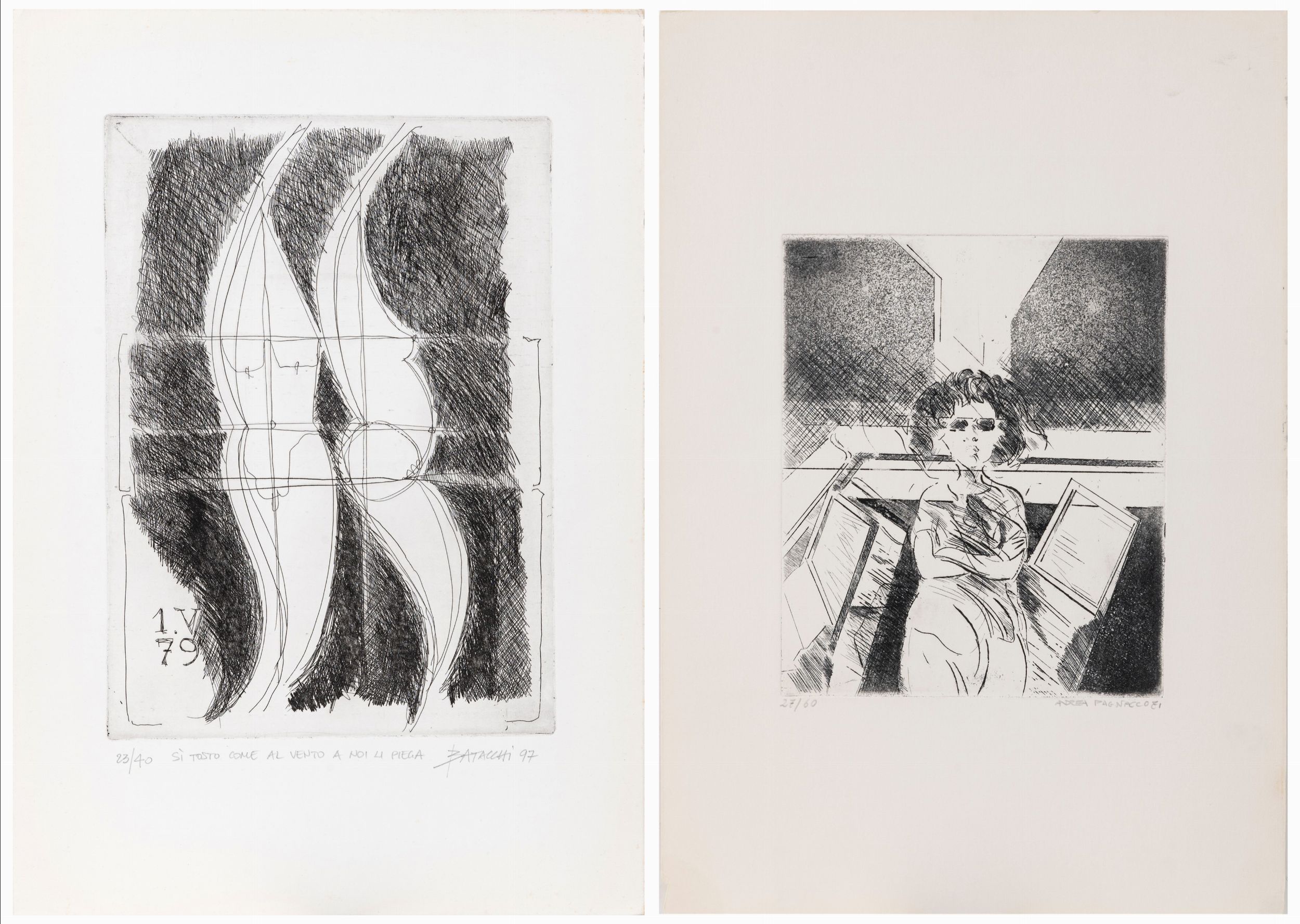 lotto di 2 acqueforti es. 27/60 - 23/40, cm. 50x35