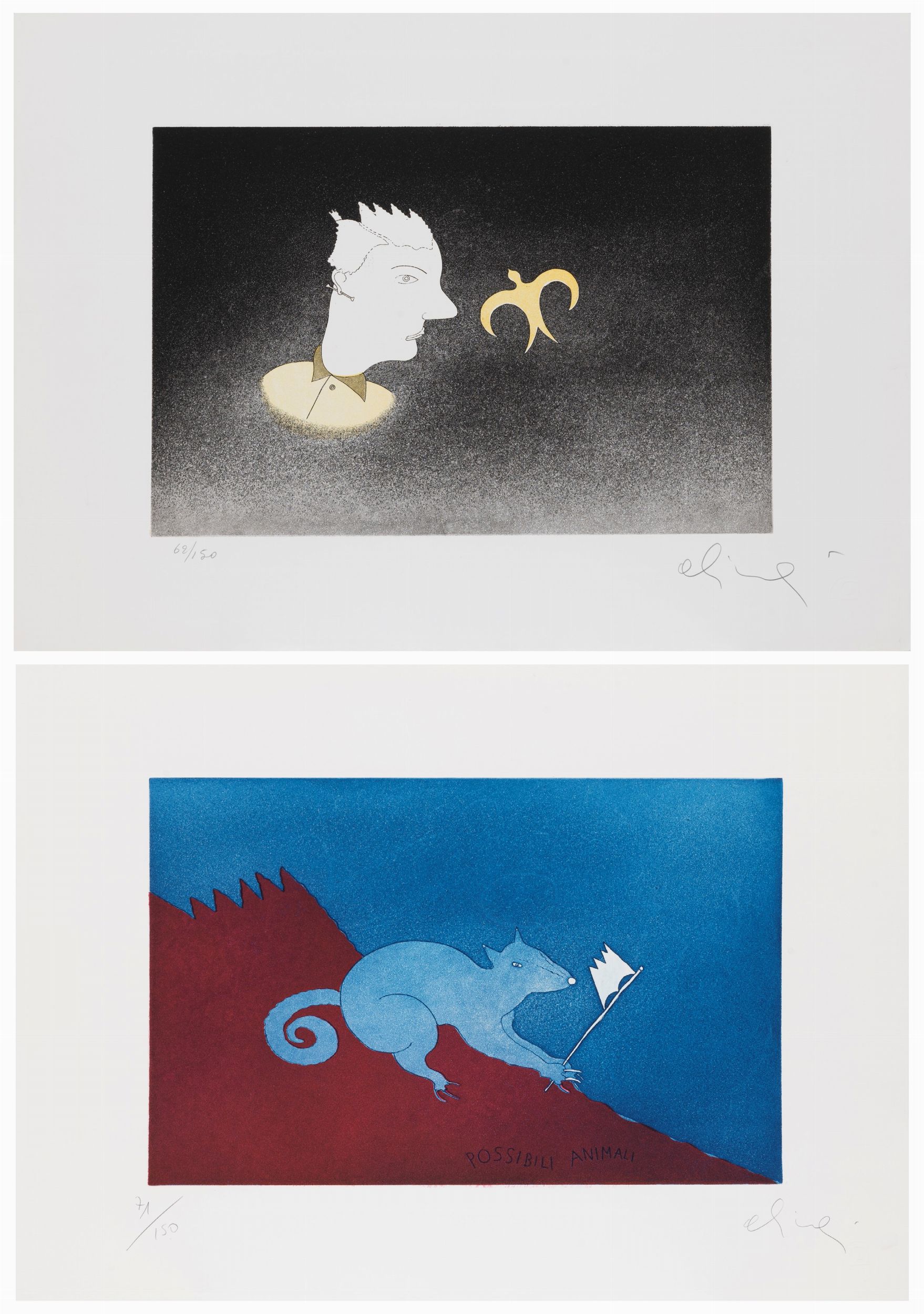 lotto di 2 acqueforti acquetinte es. 62/150 - 71/150, cm. 32x48 (lastre) 50x70 (fogli)