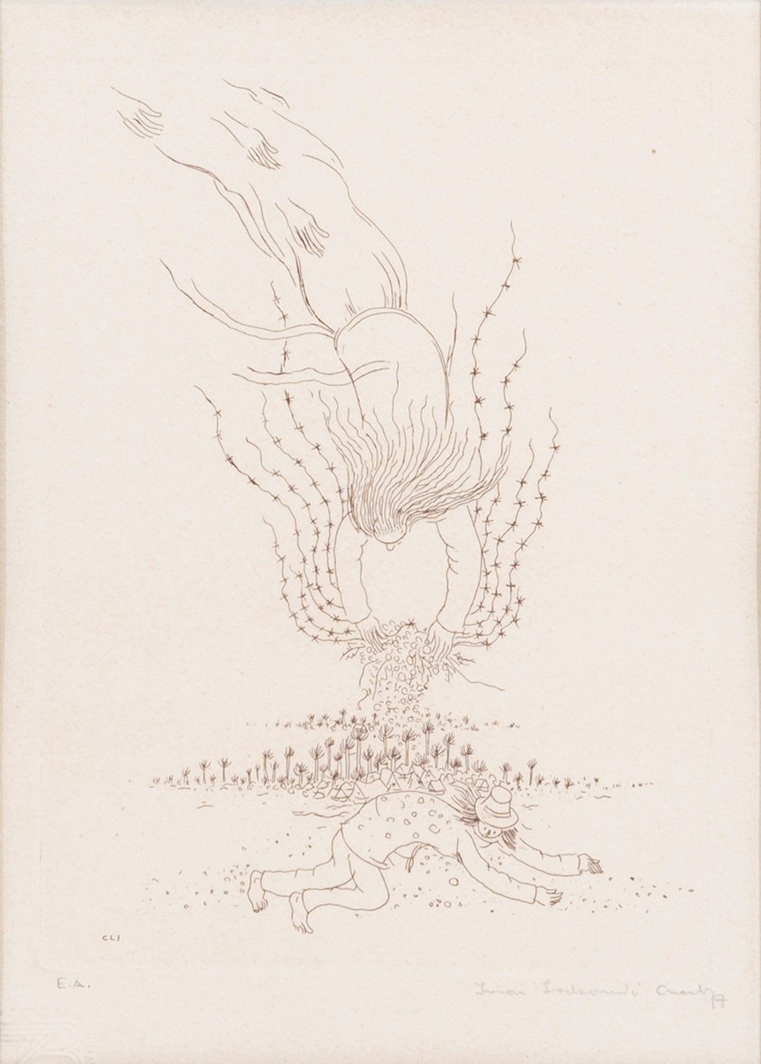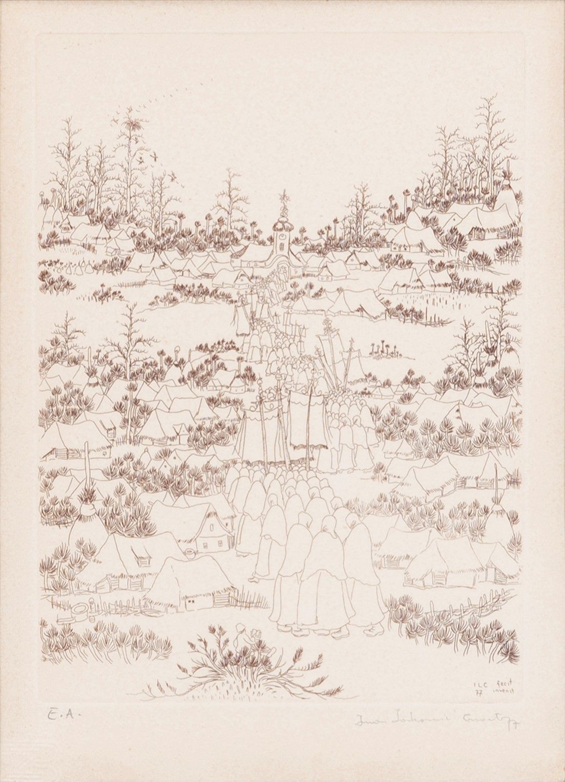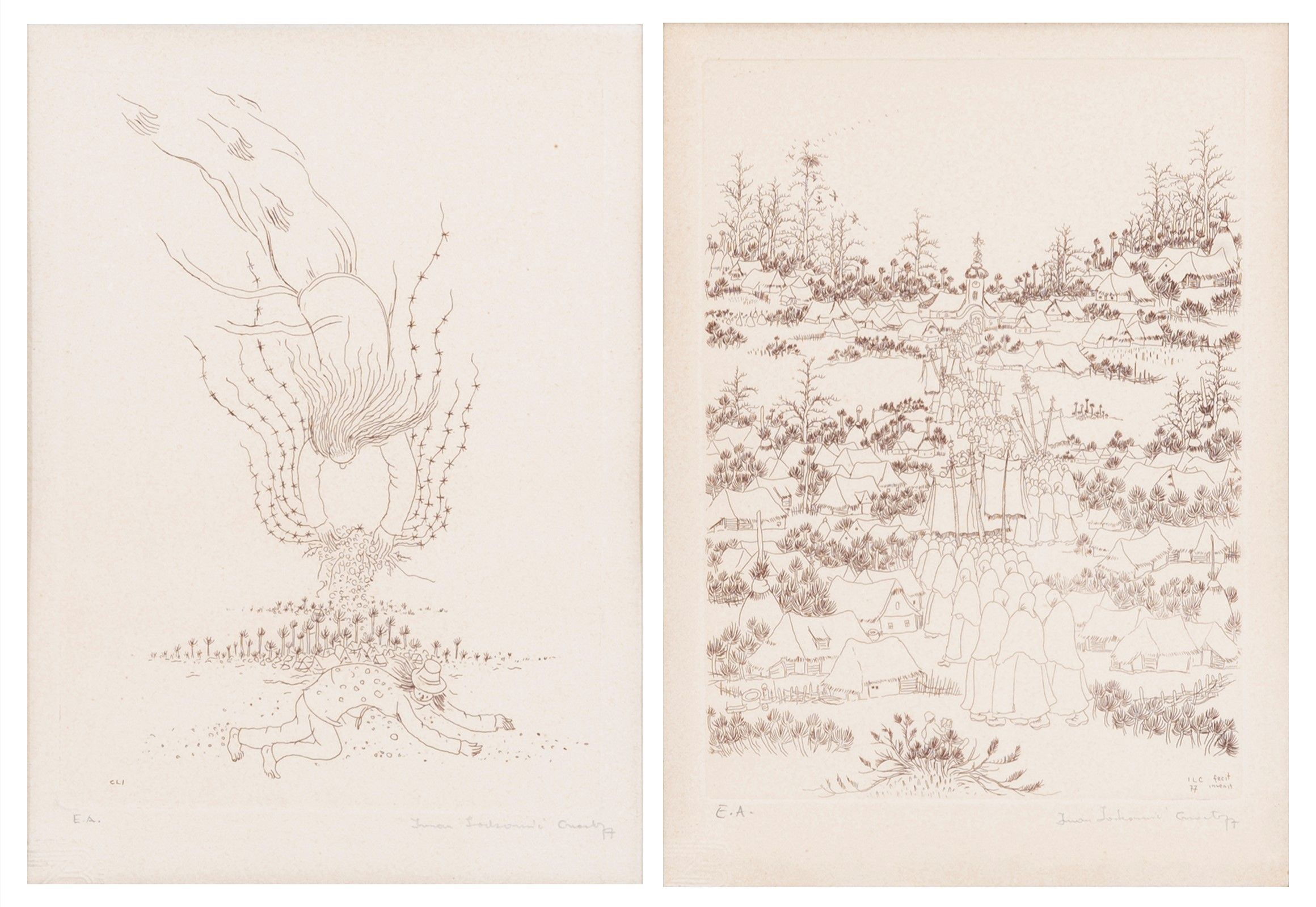 lotto di due acqueforti es. E.A., cm. 22x16 (lastra) cad.