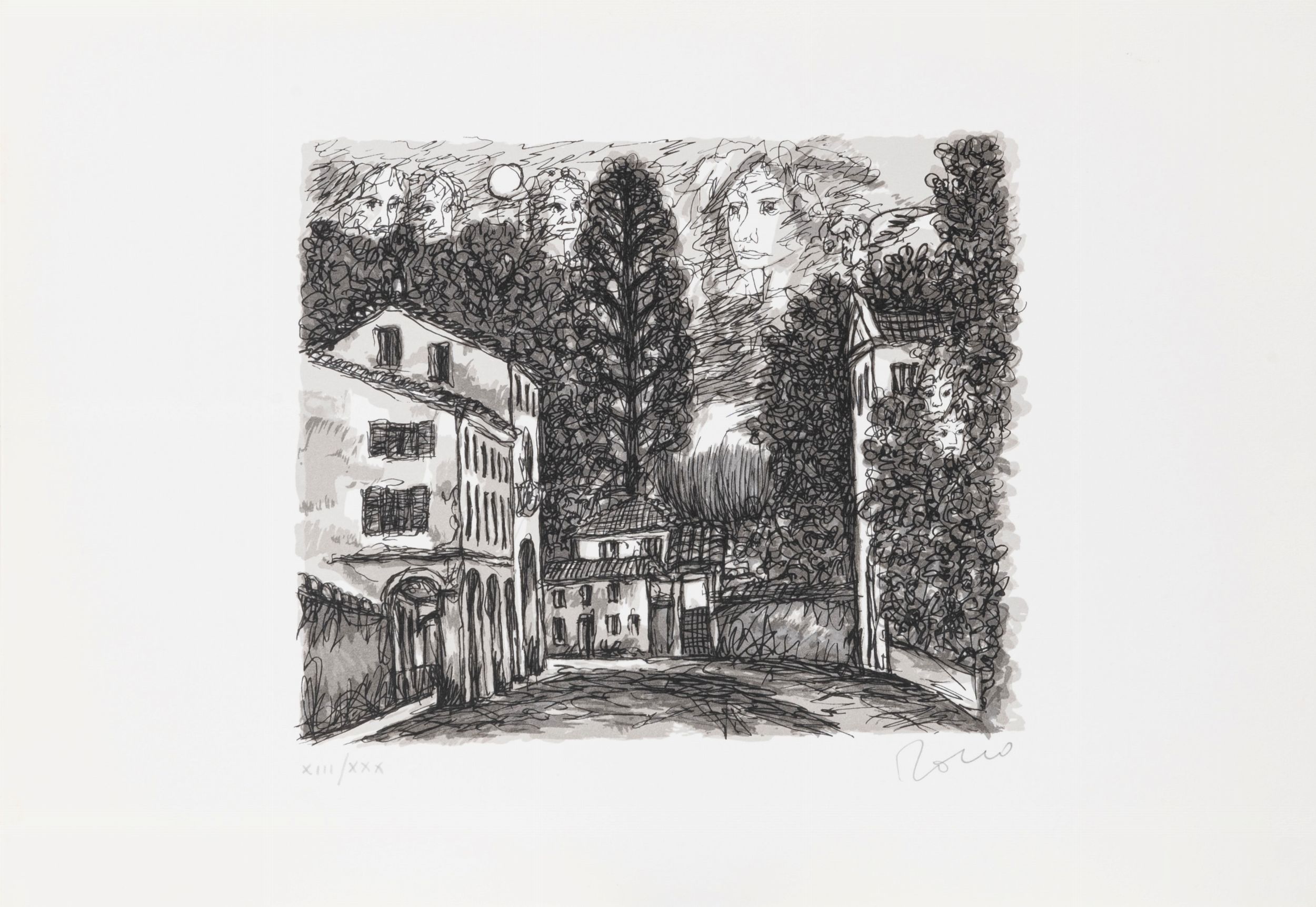 lotto di 9 acqueforti e 1 litografia, cm. 35x50 cad. (foglio)