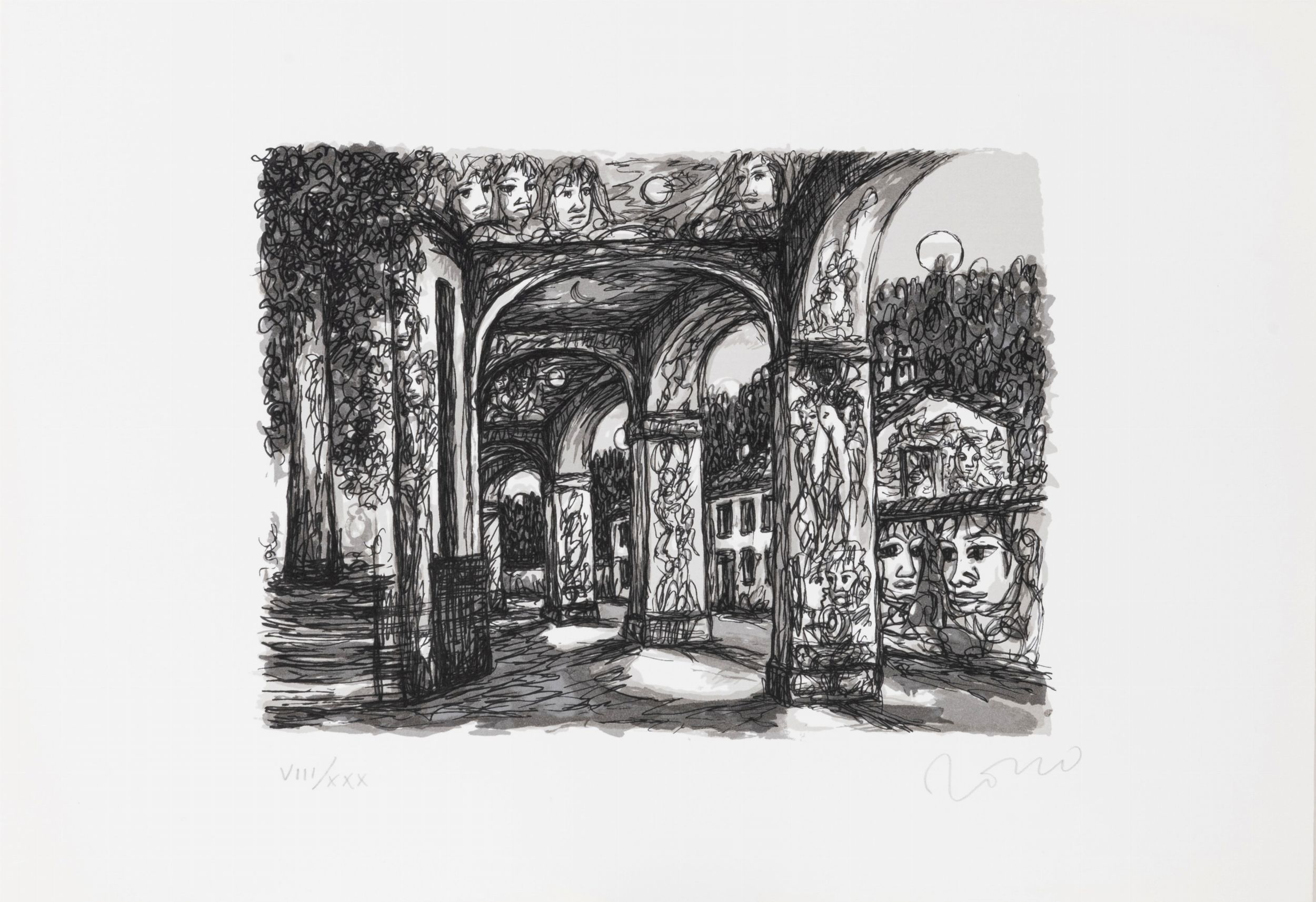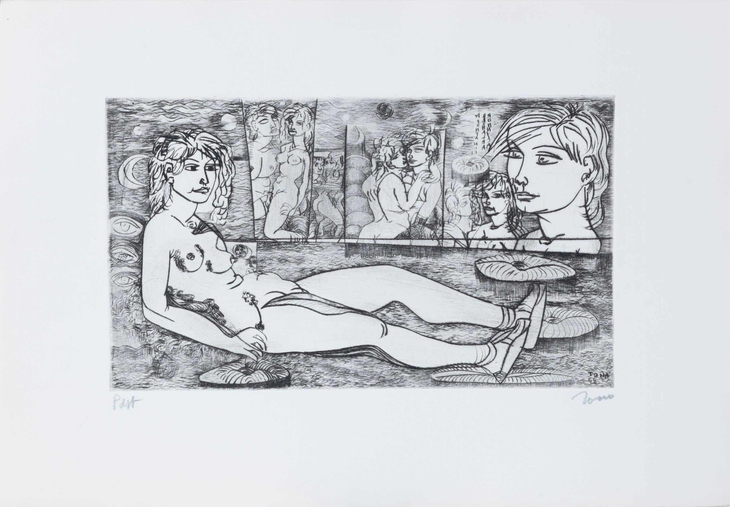 lotto di 9 acqueforti e 1 litografia, cm. 35x50 cad. (foglio)