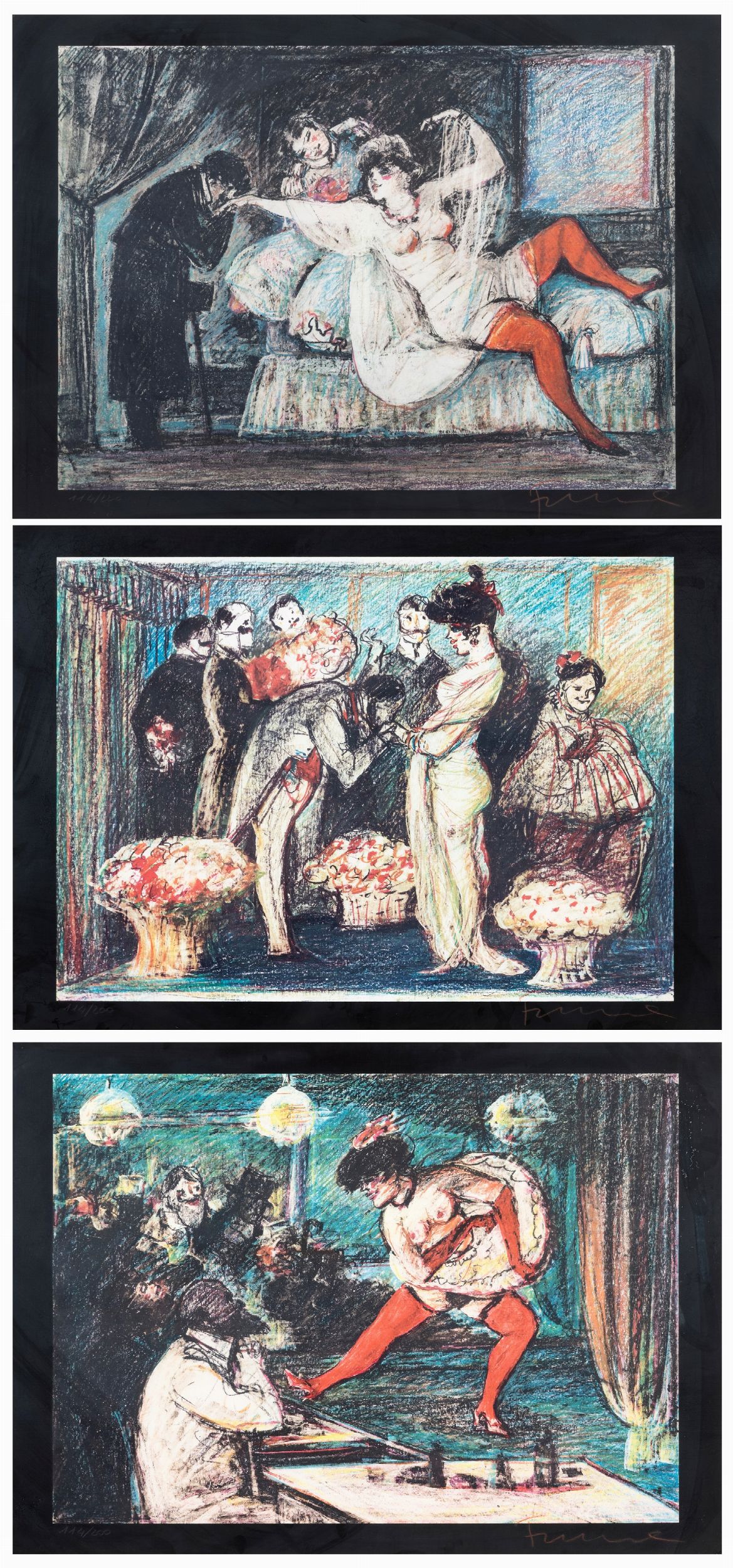 lotto di 3 serigrafie es. 114/200, cm. 60x80 cad.