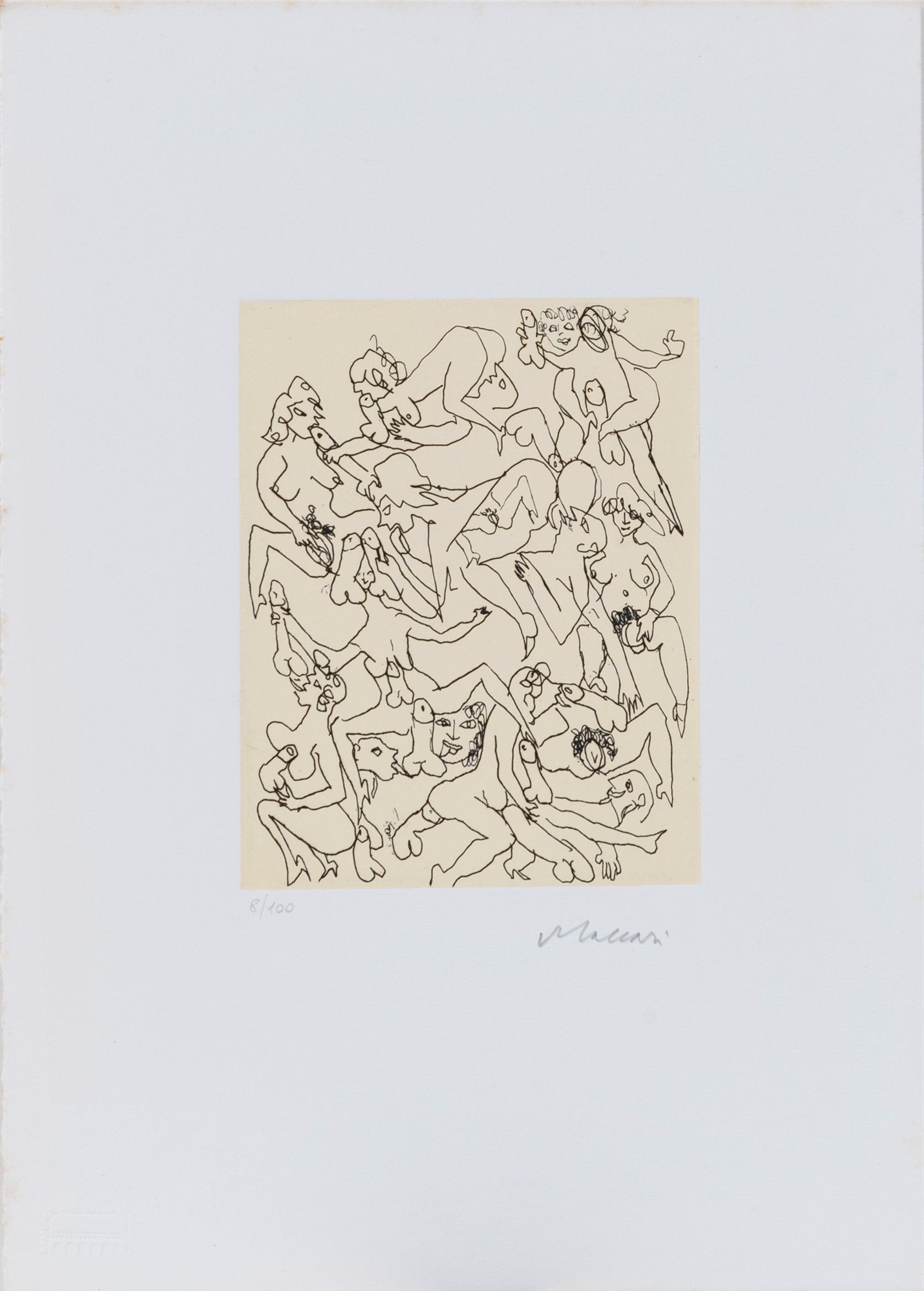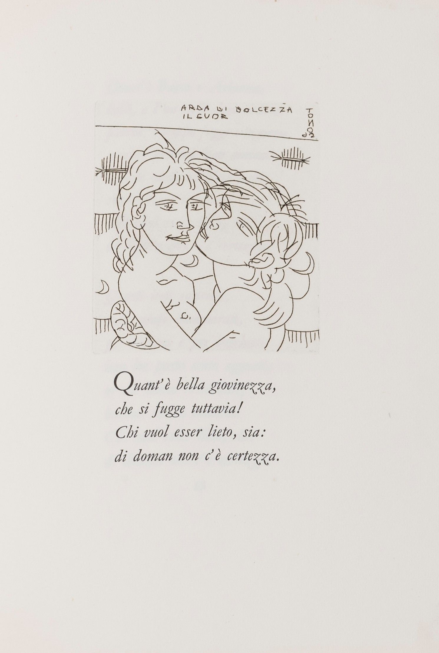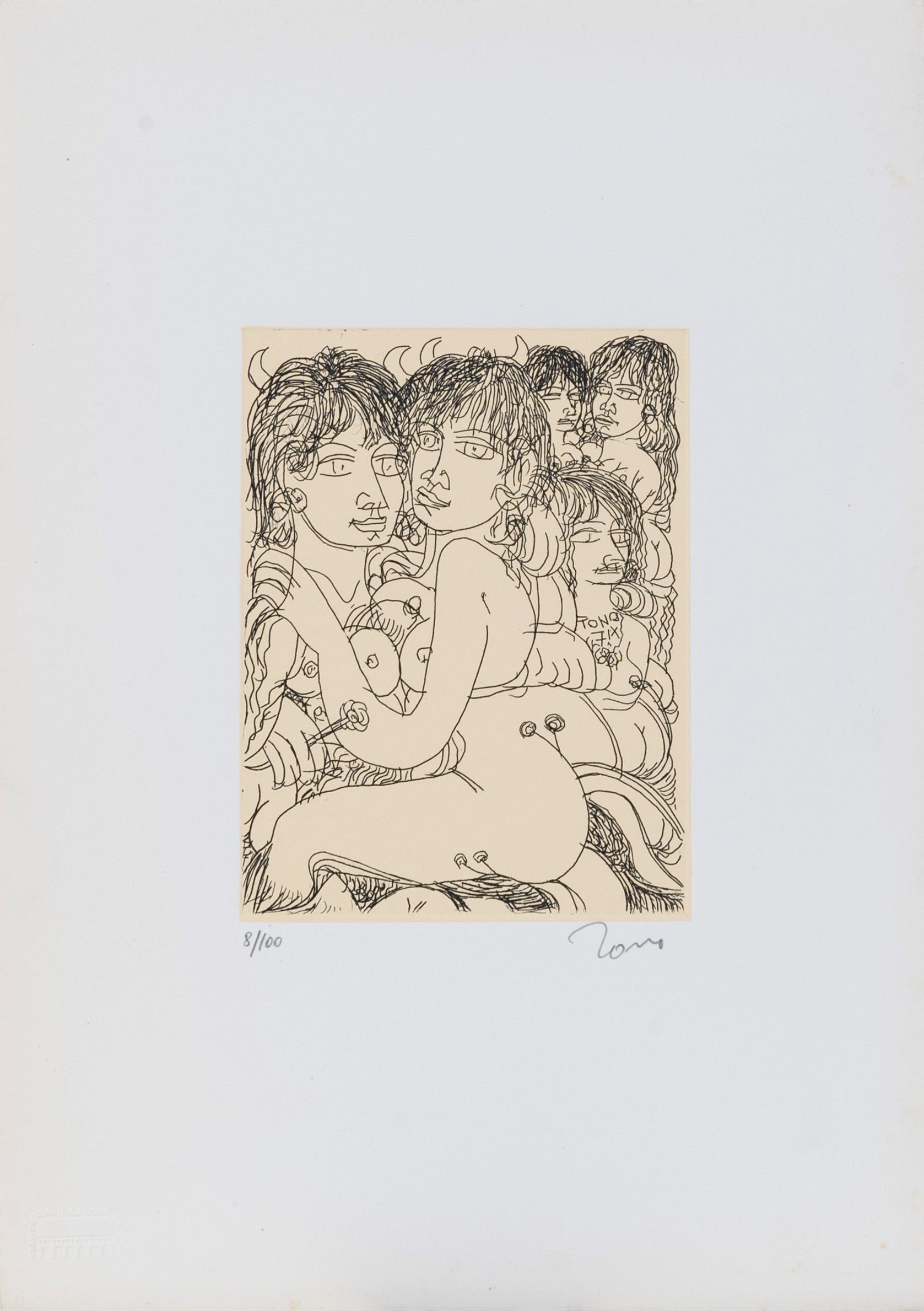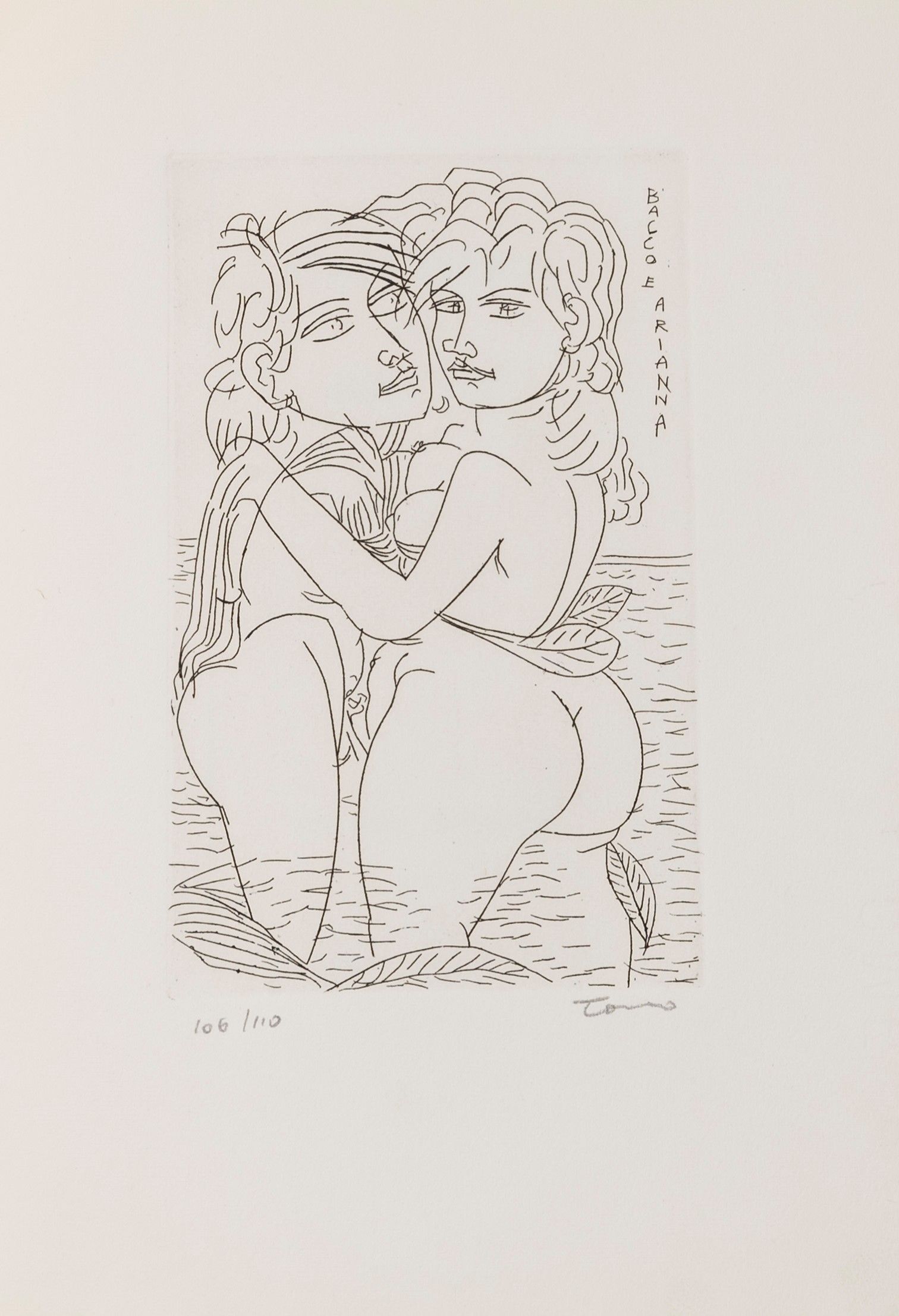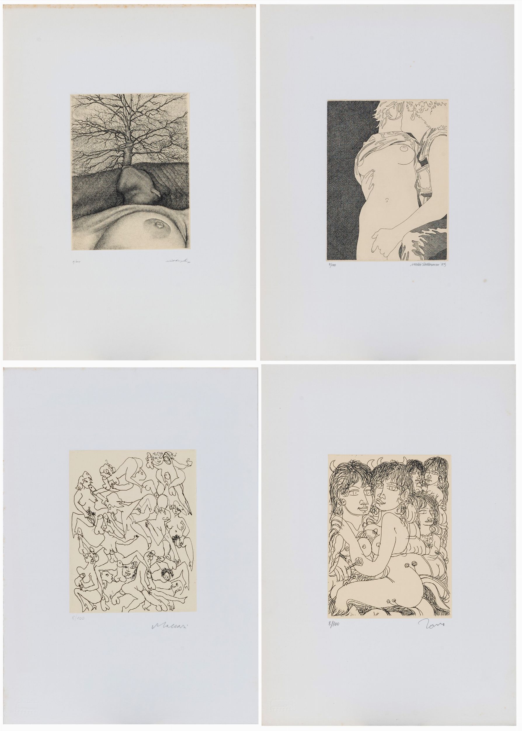 lotto di 4 acqueforti es. 8/100 e un libro es. 106 contenente 3 acqueforti di Tono Zancanaro e una p, cm. 35x25 cad.
