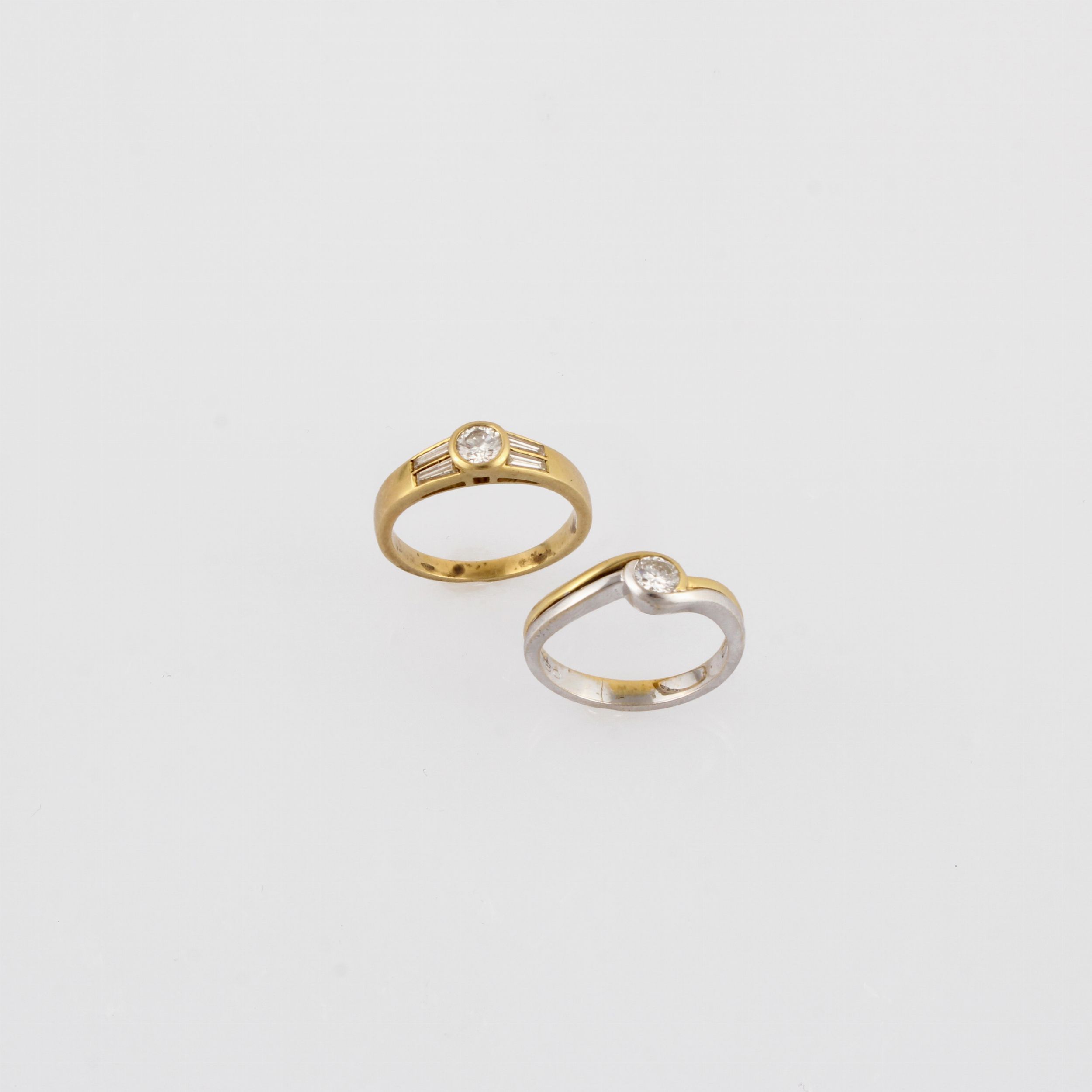 costituito da due anelli in oro giallo e bianco con brillanti del peso complessivo di 0,50 ct ca. e diamanti tapered, gr. complessivi 8,2.