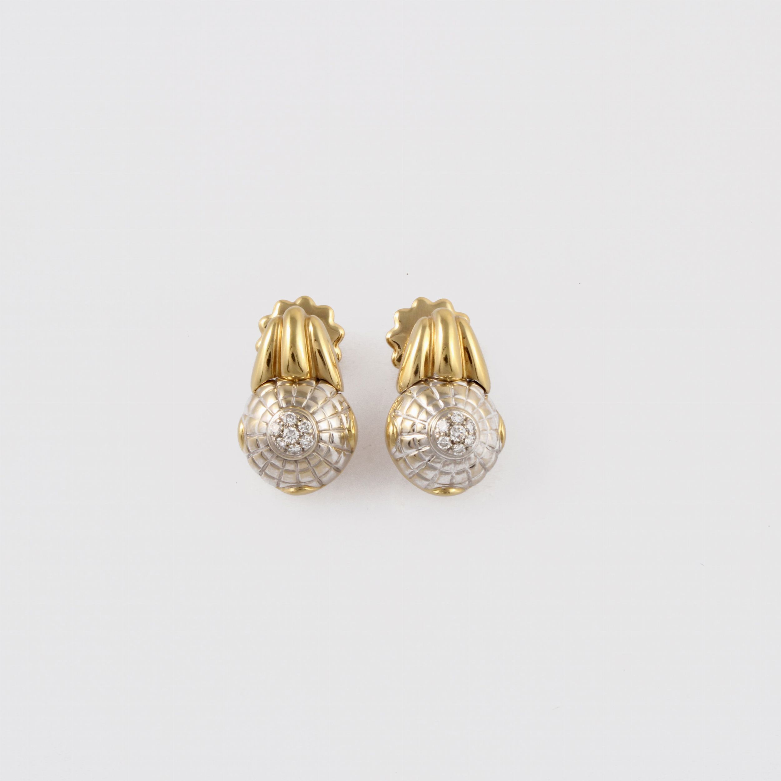 in oro giallo e bianco con motivo circolare inciso ornato da brillanti, gr. 14,8.