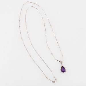 in oro bianco a segmenti snodati, pendente con pietra sintetica, gr. complessivi 25,9. Lunghezza 90 cm