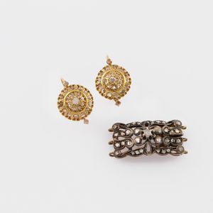 di orecchini in oro giallo con diamanti taglio a rosa e fermezza in argento e oro a forma rettangolare traforata [..]