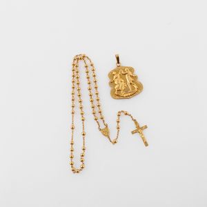 in oro giallo costituito da un pendente raffigurante una scena galante e un rosario, gr. complessivi 21.