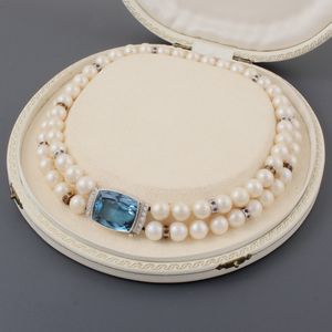 a due fili di perle d'acqua dolce alternate a rondelle in oro giallo e bianco con piccoli zaffiri, chiusura anteriore [..]